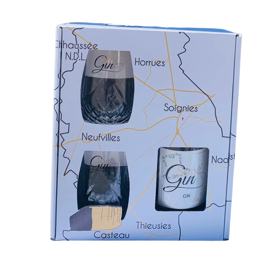 Coffret Soné’Gin composé d’une bouteille de 50 cl et de deux verres